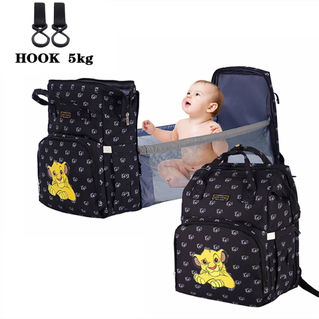 Disney Diaper Bag Backpack With Changing Bed Mommy Baby Stroller Bag Large Capacity Nappy Maternity Care Women Bag The King Lion – Bed Bag-Hook