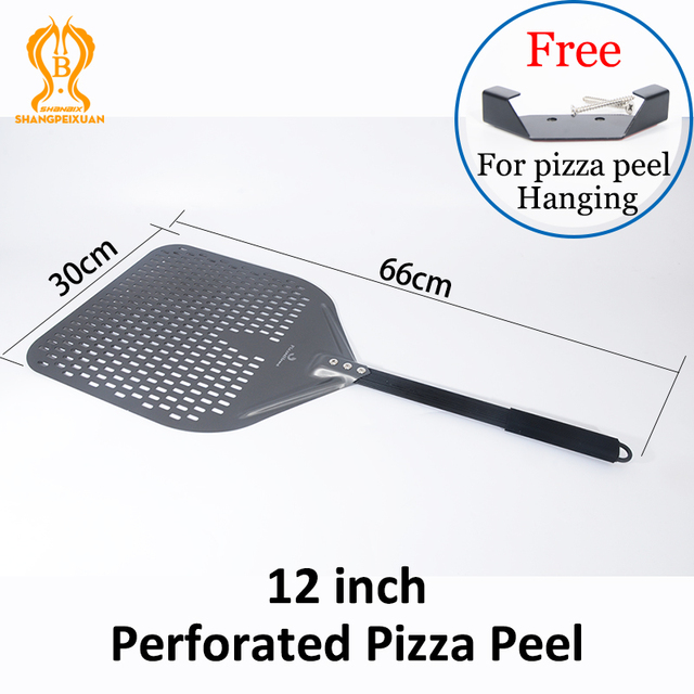 SHANGPEIXUAN 16/14/13/12 Inch Perforated Pizza Peel Rectangular Pizza Shovel Aluminum Hard Coating Pizza Peel Paddle Short Tool – 12 inch Pizza Peel