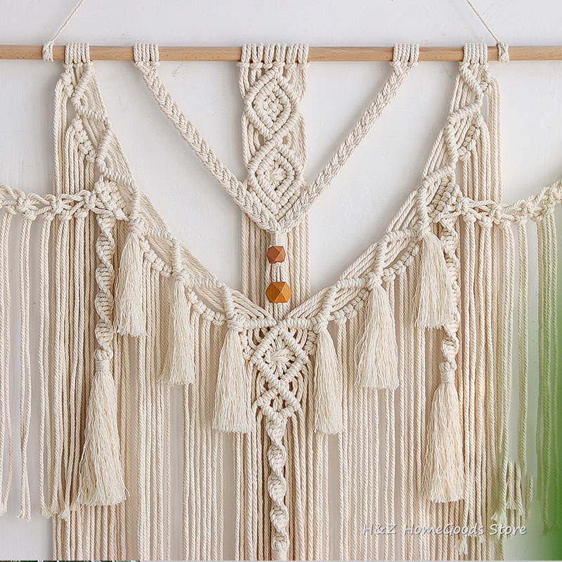 Big Macrame Wall Hanging Tapestry With Tassels Hand Woven Nordic Style For Living Room Bedroom House Art Decor Boho Decoration