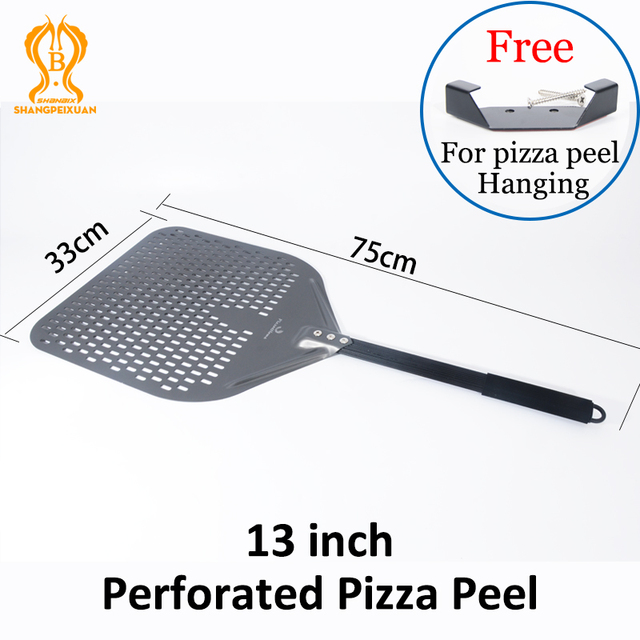 SHANGPEIXUAN 16/14/13/12 Inch Perforated Pizza Peel Rectangular Pizza Shovel Aluminum Hard Coating Pizza Peel Paddle Short Tool – 13 inch Pizza Peel