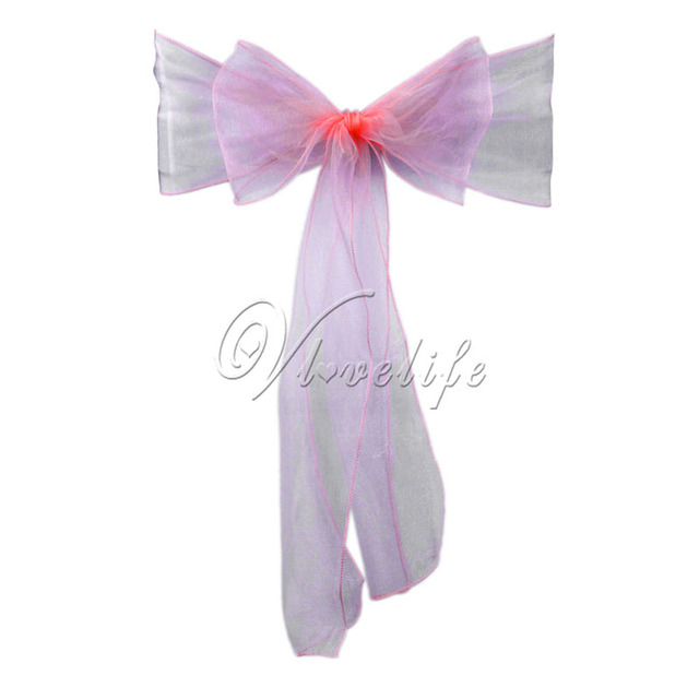 100pcs Chair Sashes Organza Chair Bows Wedding Party Supplies Christmas Valentines Decor Sheer Organza Fabric Chair Decoration – Baby Pink