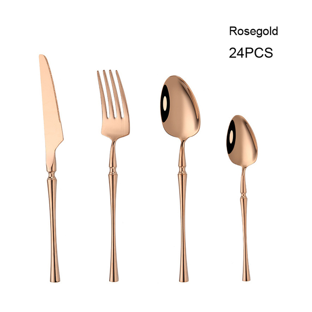 24pcs/lot Korean Food Portable Cutlery 304 Stainless Steel Table Fork Knife Spoon Dinner Set Dinnerware Gold Tableware Sets