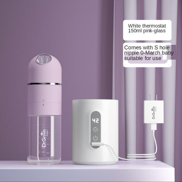 Newborn Baby Insulated Bottle Glass USB Constant Temperature Rapid Flushing Portable Charging Night Milk Heating Cute Water – 150ml glass pink