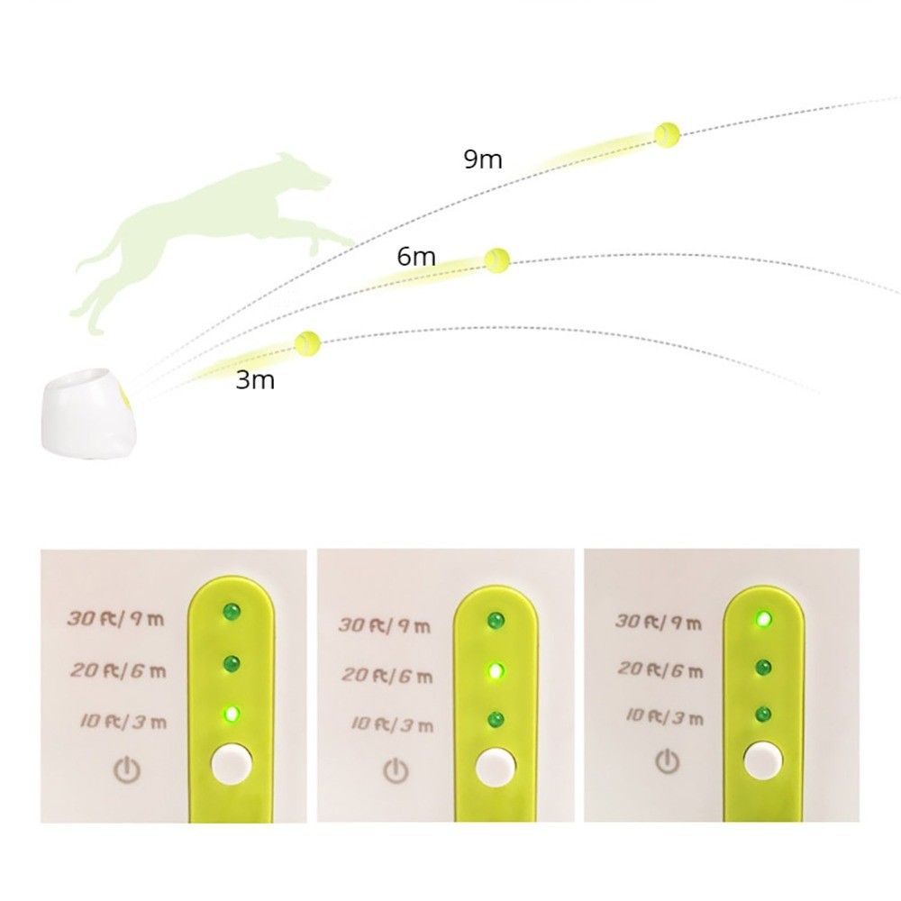 Pet Dog Toys Tennis Launcher Automatic Throwing Machine Pet Ball Throw Device 3/6/9m Section Emission with 3 Balls Dog Training